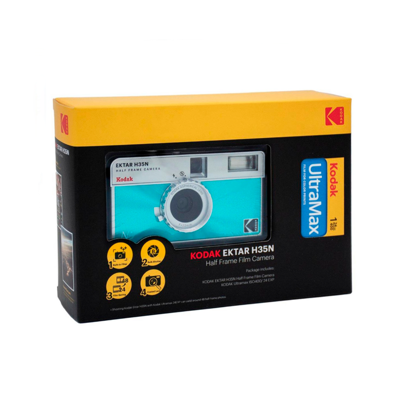 L'appareil photo argentique Kodak Ektar H35N Half Frame est idéal pour les photographes qui cherchent à réduire l'utilisation de films et les coûts associés. Il est doté d'un flash intégré et d'un boîtier petit et léger, et est conçu pour être maniable et facile à utiliser ; même les débutants en matière de film peuvent le manipuler sans effort. Il est disponible en bleu givré, rose ou gris métal.