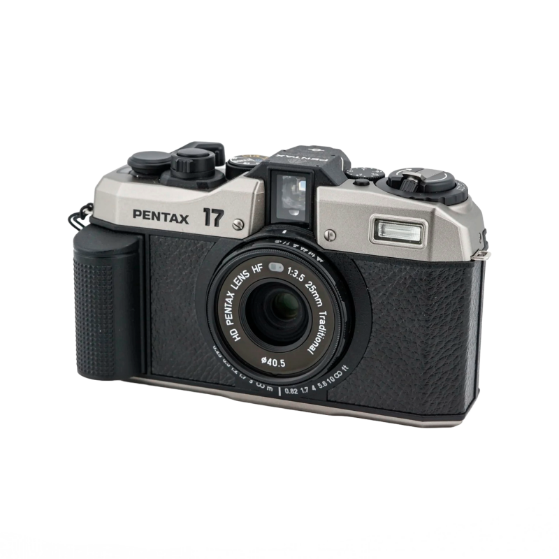 Le Pentax 17 est un appareil photo argentique compact offrant une prise de vue en demi-format, doublant ainsi le nombre de photos par film 35mm. Idéal pour les amateurs de photographie authentique, il combine design élégant, objectif HD de 25 mm f/3,5, et fonctionnalités avancées comme la mise au point manuelle et l'exposition automatique.