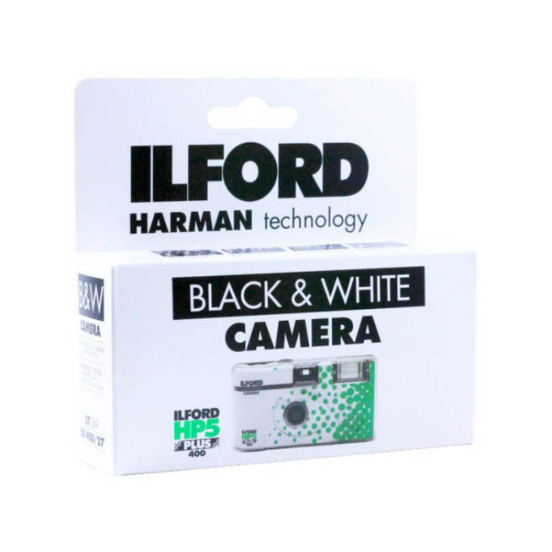 Appareil jetable noir et blanc de 27 photos avec flash intégré.