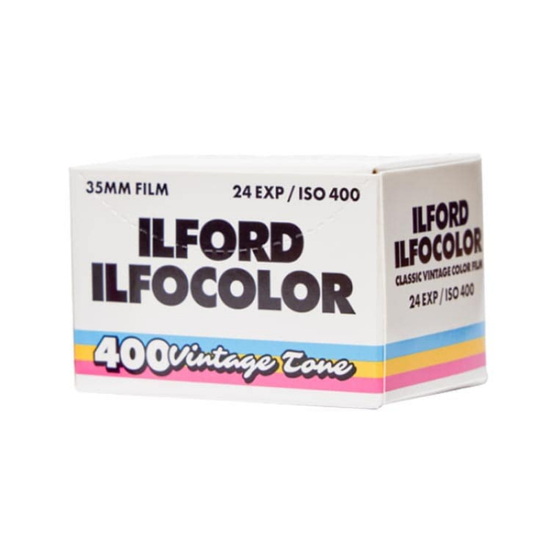 Le film Ilforcolor 400 iso en 24 poses est une pellicule de la marque Ilford avec des tons "vintage" et un grain assez présent. Elle premet des photos assez rétro avec des couleurs désaturées.